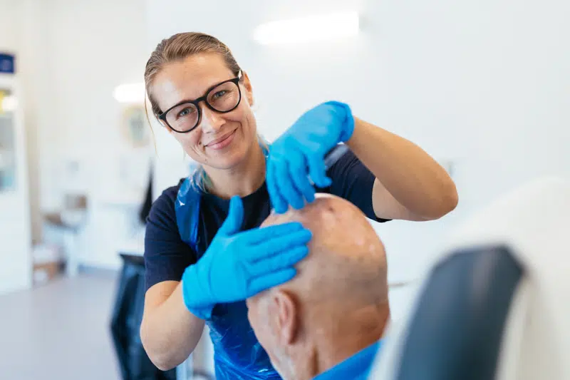 - Sygeplejen udføres af en sygeplejerske i professionelle omgivelser med et højt hygiejnisk niveau.